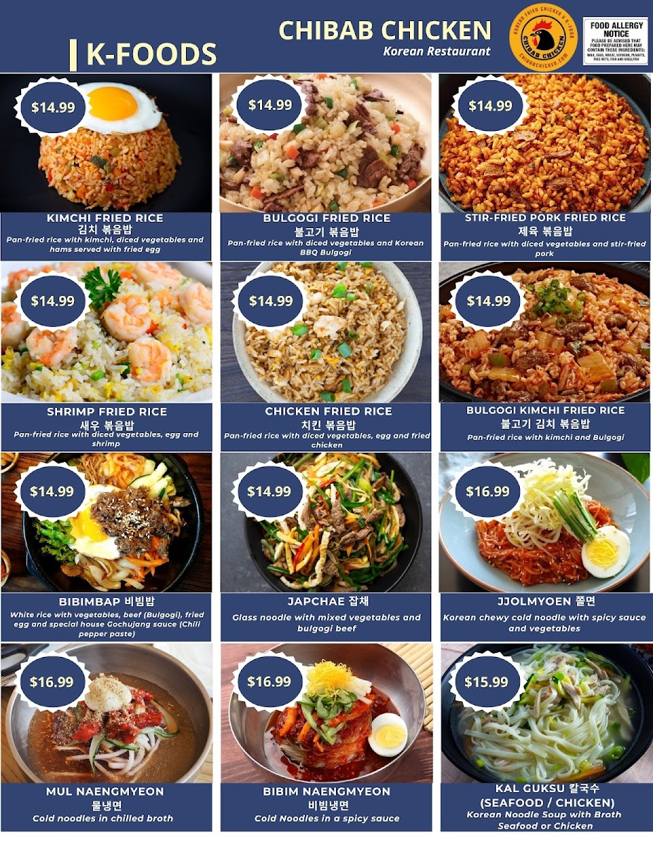 Welcome to CHIBAB CHICKEN, your go-to destination for tantalizing Korean Fried Chicken and K-Food! Nestled in Niles, IL, this culinary gem offers an impressive menu brimming with delicious options. Start your feast with their signature BBQ Oven Chicken or indulge in the rich flavors of Galbi Oven Chicken. For the classic fried chicken lover, the KGolden Fried Chicken boasts a special recipe that ensures crispiness with every bite.